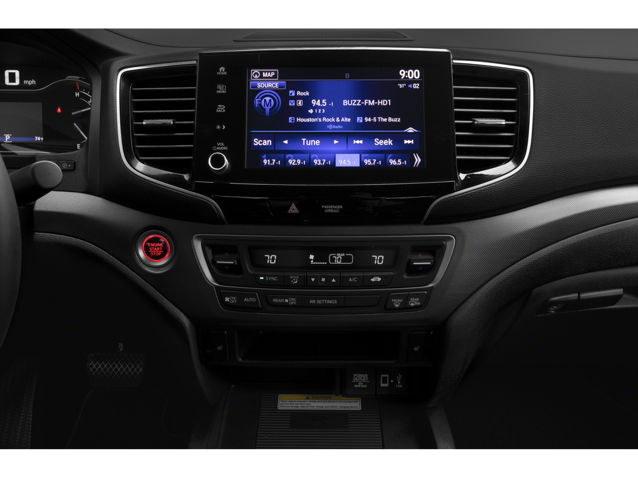 - Radio: 540-Watt Premium Audio System w/8 Speakers -inc: subwoofer, Bluetooth® streaming audio, MP3/auxiliary input jack, Radio Data System (RDS), Speed-Sensitive Volume Compensation (SVC), 8" display audio w/high-resolution electrostatic touch screen and customizable feature settings, Apple CarPlay compatibility, Android Auto compatibility, HondaLink, SMS text message function (Compatible w/select phones w/Bluetooth®, Your wireless carrier's rate plans apply, State or local laws may limit use of texting feature, Only use texting feature when conditions allow you to do so safely.), 1.5-amp USB smartphone/audio interface in front console (1 port), HD Radio, truck-bed audio system and wireless phone charger